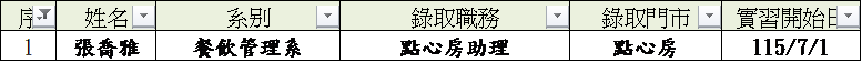 115學年實習 誠品旅館 錄取名單