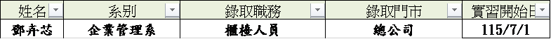 實習錄取公告